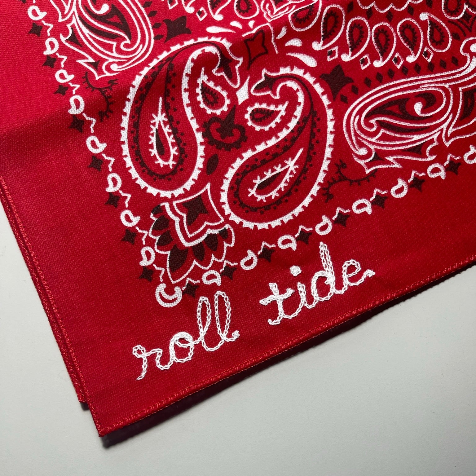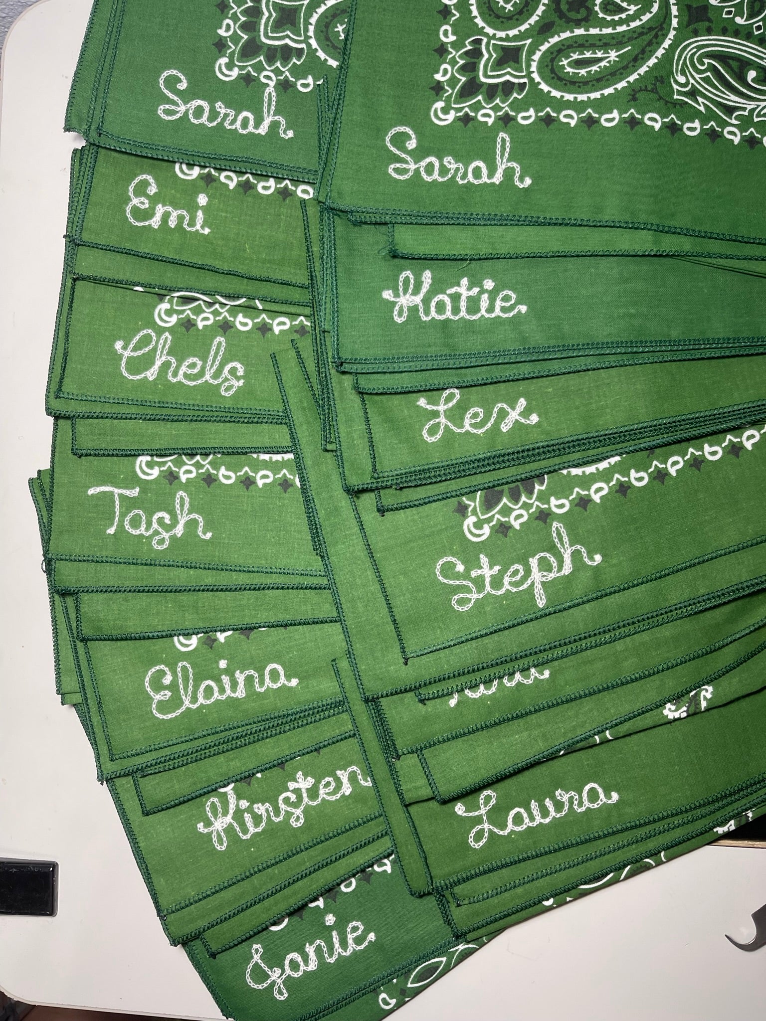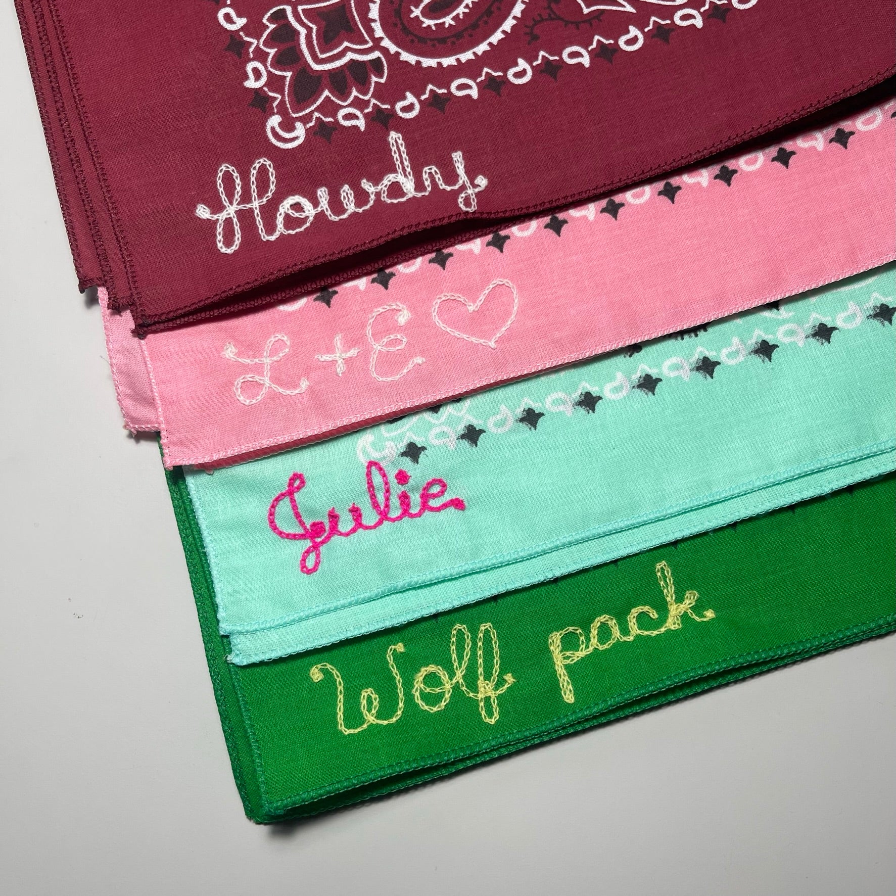 Celebrate anything (and everything) with this one-of-a-kind bandana, custom chainstitched the old-school way – by hand, using a vintage Singer 114w103. Every letter, swirl, and stitch is crafted with care and flair, turning classic cotton into a canvas of personality. Whether you’re toasting a birthday, marking a milestone, or just feeling extra fabulous on a Tuesday, this bandana is your wearable confetti. Bold, nostalgic, and made to stand out – because life’s too short for boring accessories.