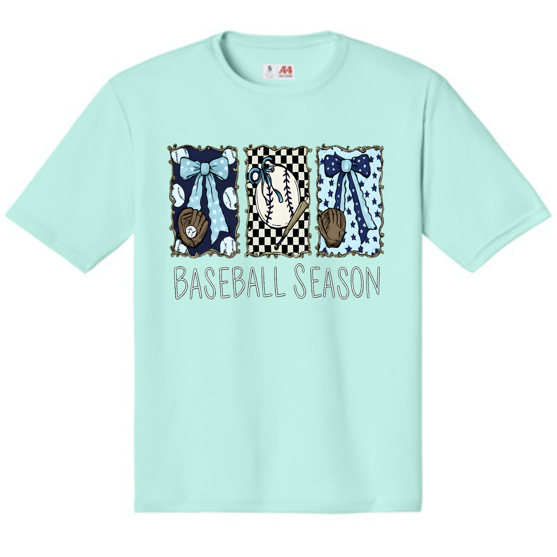 Celebrate the sweetest season of all with our Baseball Season Tee - the perfect blend of sporty and adorable for every proud baseball mom or sister. Comes in Navy or Mint Color and Dri-Fit or Cotton material.